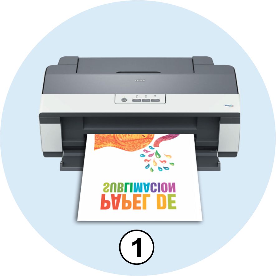 Papel blanco 90g/m2, especialmente tratado para transferir el máximo de la tinta para el substrato durante la transferencia.